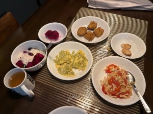I try to keep to a clean diet even at home. My meals look like this.