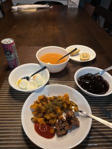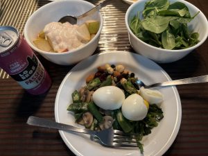 I try to keep to a clean diet even at home. My meals look like this.